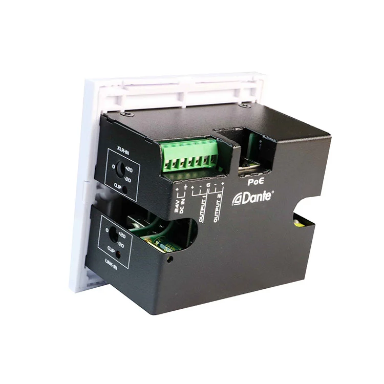 Інтэрфейс 2CH Dante 2 MIC/LINE УВАГА X 2 Выхадныя інтэрфейныя панэлі ідэальна падыходзяць для прафесійных аўдыёзапісаў, такіх як канферэнц-залы, налады гуку, студыі вяшчання і ўстаноўленыя сістэмы AV, дзе надзейныя фактычныя сістэмы Dante-To-Analog і аналагавы да дантэ патрабуюцца ў кампактным, фактарным форме. Яго дызайн, усталяваны на сцяне, дазваляе чыста і эфектыўна інтэграваць у розныя асяроддзі, захоўваючы якасную аўдыёзапарат.