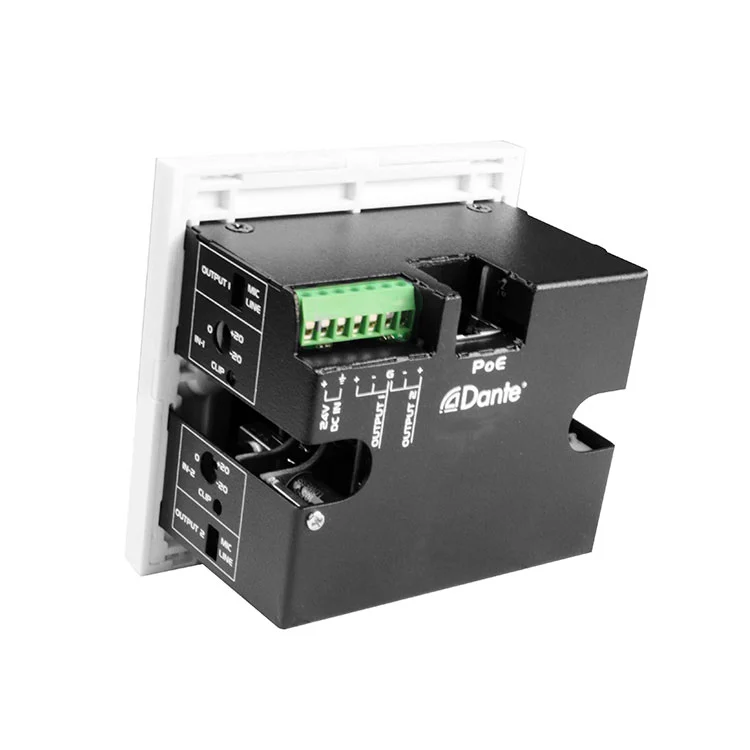 Інтэрфейс 2CH Dante 2 MIC/LINE УВАГА X 2 Выхадныя інтэрфейныя панэлі ідэальна падыходзяць для прафесійных аўдыёзапісаў, такіх як канферэнц-залы, налады гуку, студыі вяшчання і ўстаноўленыя сістэмы AV, дзе надзейныя фактычныя сістэмы Dante-To-Analog і аналагавы да дантэ патрабуюцца ў кампактным, фактарным форме. Яго дызайн, усталяваны на сцяне, дазваляе чыста і эфектыўна інтэграваць у розныя асяроддзі, захоўваючы якасную аўдыёзапарат.
